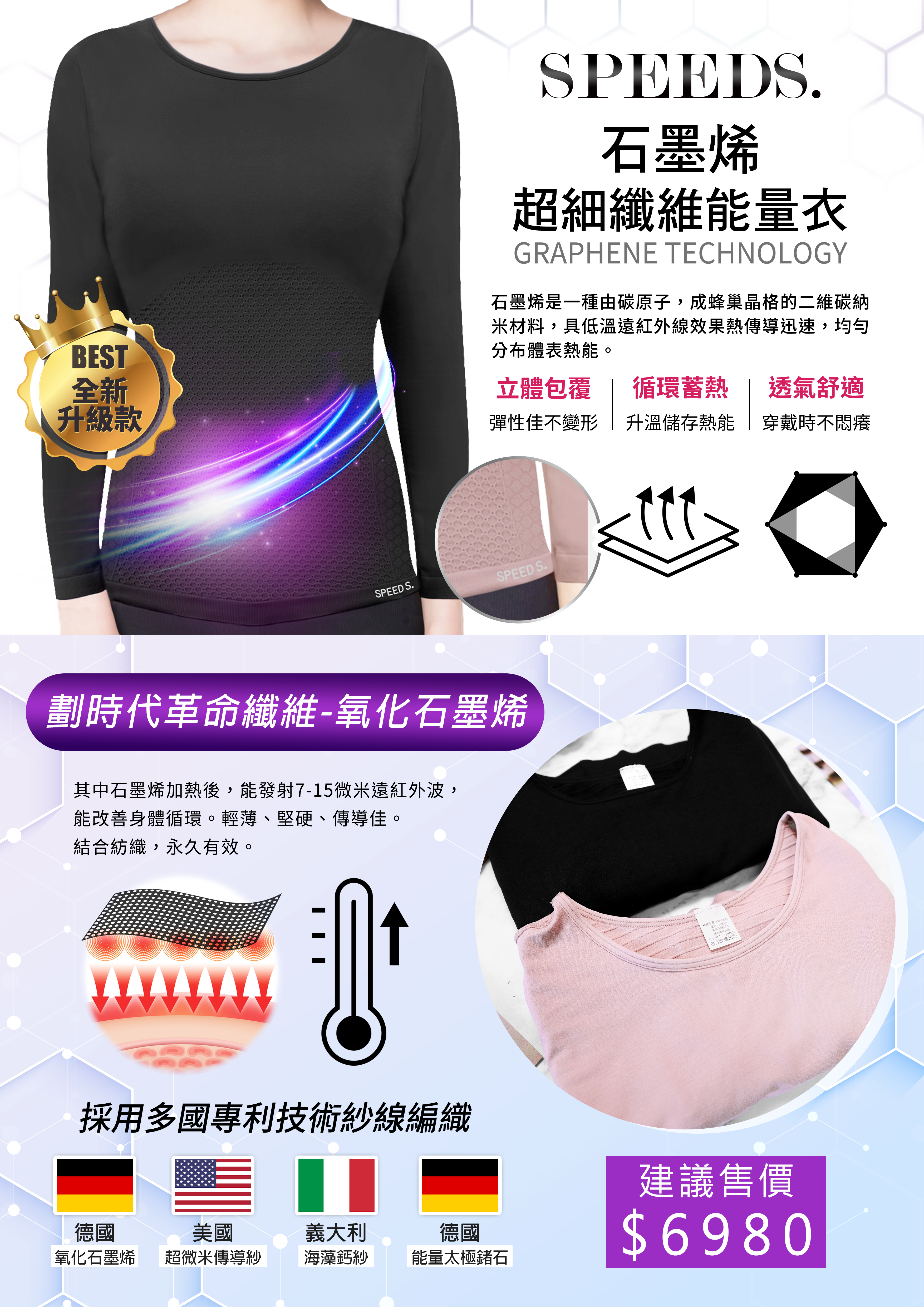 材質:尼龍73%(內含石墨烯、能量鍺)、底紗-尼龍17%、彈性纖維10%