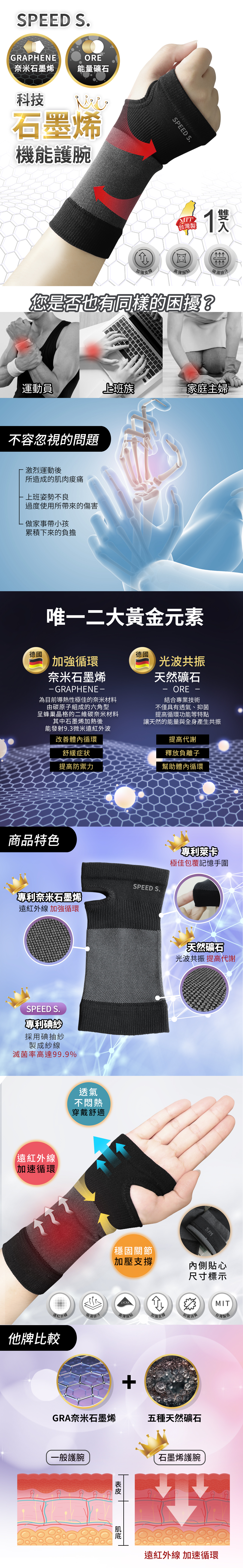 【SPEED S. 科技石墨烯機能護腕(S-ML/L-XL)】